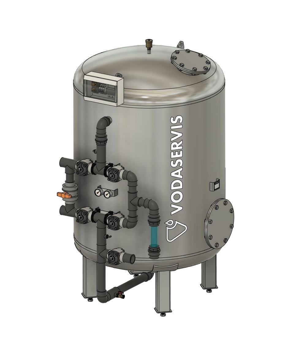 - vyroben standardně z nerezového materiálu 1.4301 ( AISI 304 ) včetně kompletního vnitřního vystrojení (bez vnitřních plastových součástí) a skládá z válcové části usazené na stavitelných nohách, podkladní a filtrační náplně, plastových či nerezových ovládacích rozvodů a armatur a manuálního či automatického řízení, povrchová úprava filtrů je balotinováním,