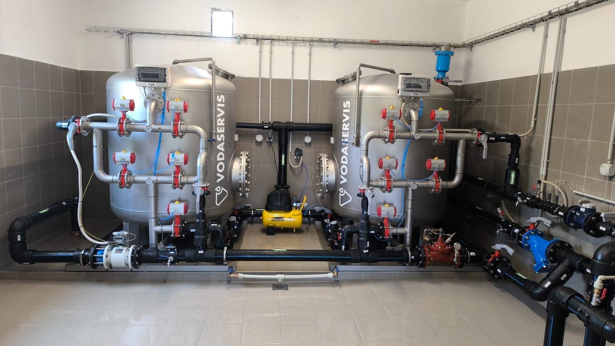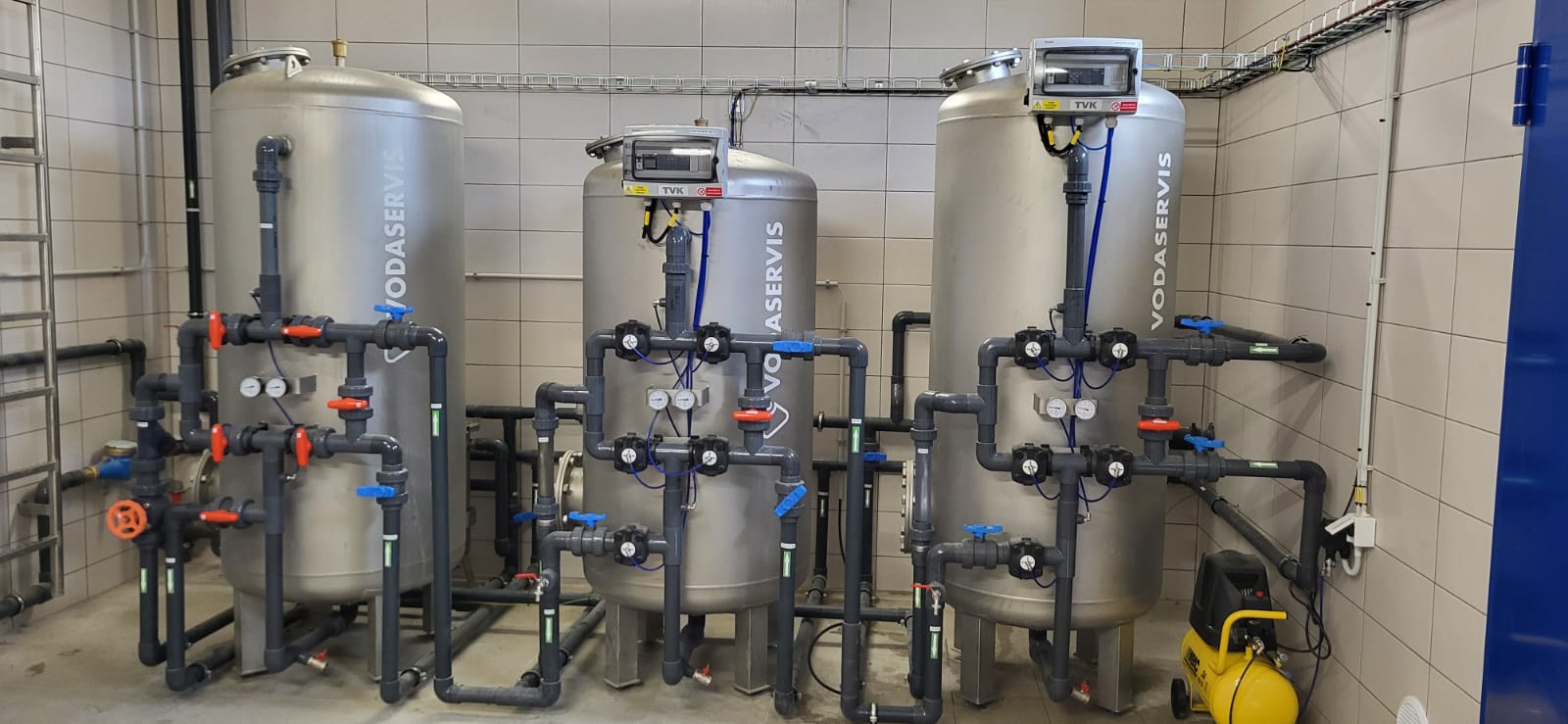 - s různou filtrační náplní: křemičitý písek (TVK), odmanganovací hmota (TVK S), aktivní uhlí (TVK U), odkyselovací hmota (TVK O),